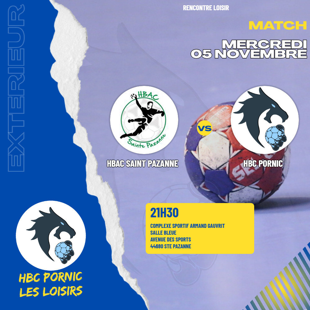 • HBAC Saint PazanneHBAC Saint Pazanne/HBC Pornic LoisirsHBC Pornic Loisirs Les Loisirs se déplacent sur le terrain du HBAC Saint Pazanne à 21h30