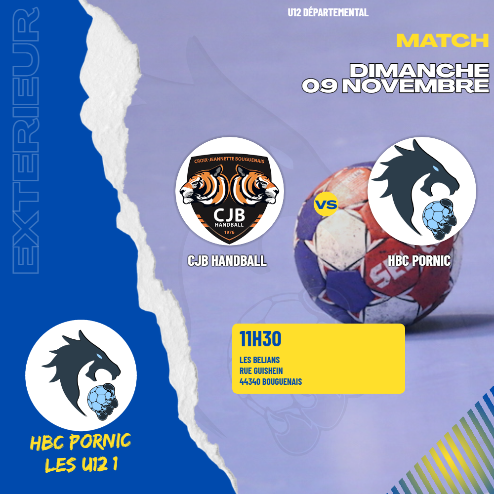 • CJB HandballCJB Handball/HBC Pornic U12 (1)HBC Pornic U12 (1) Les U12 (1) se déplacent sur le terrain du CJB Handball à 11h30