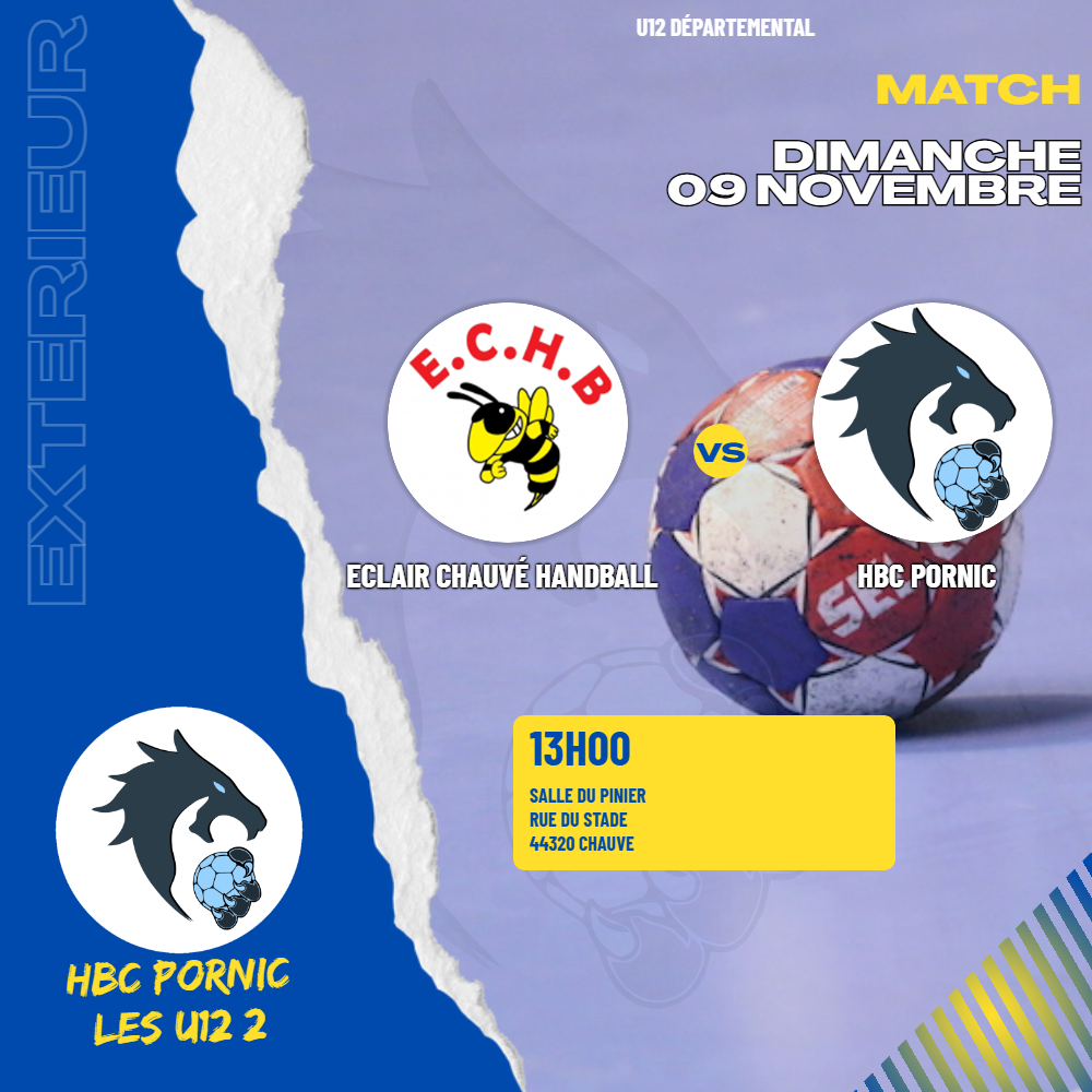 • Eclair Chauvé HandBallEclair Chauvé HandBall/HBC Pornic U12 (2)HBC Pornic U12 (2) Les U12 (2) se déplacent sur le terrain de l' Eclair Chauvé HandBall à 13h00