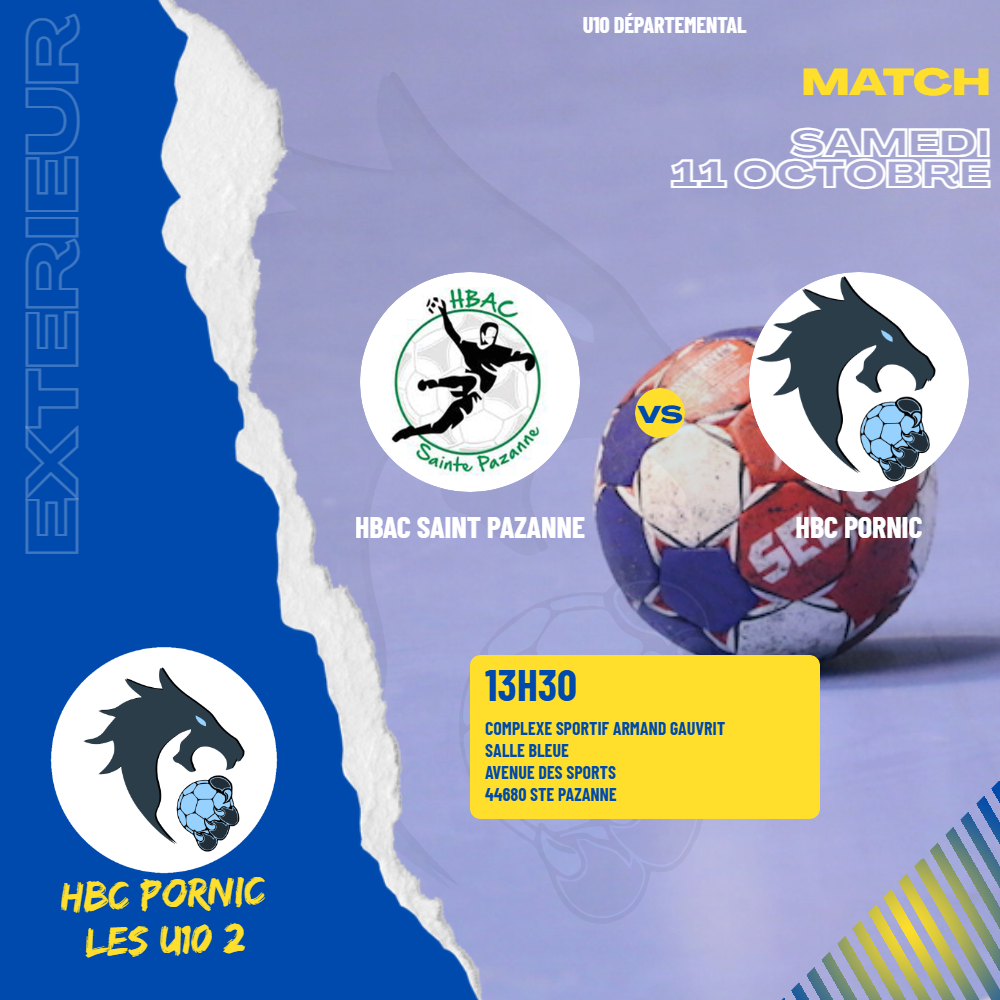 • HBAC Saint PazanneHBAC Saint Pazanne/HBC Pornic U10 (2)HBC Pornic U10 (2) Les U10 (2) se déplacent sur le terrain du HBAC Saint Pazanne à 13h30