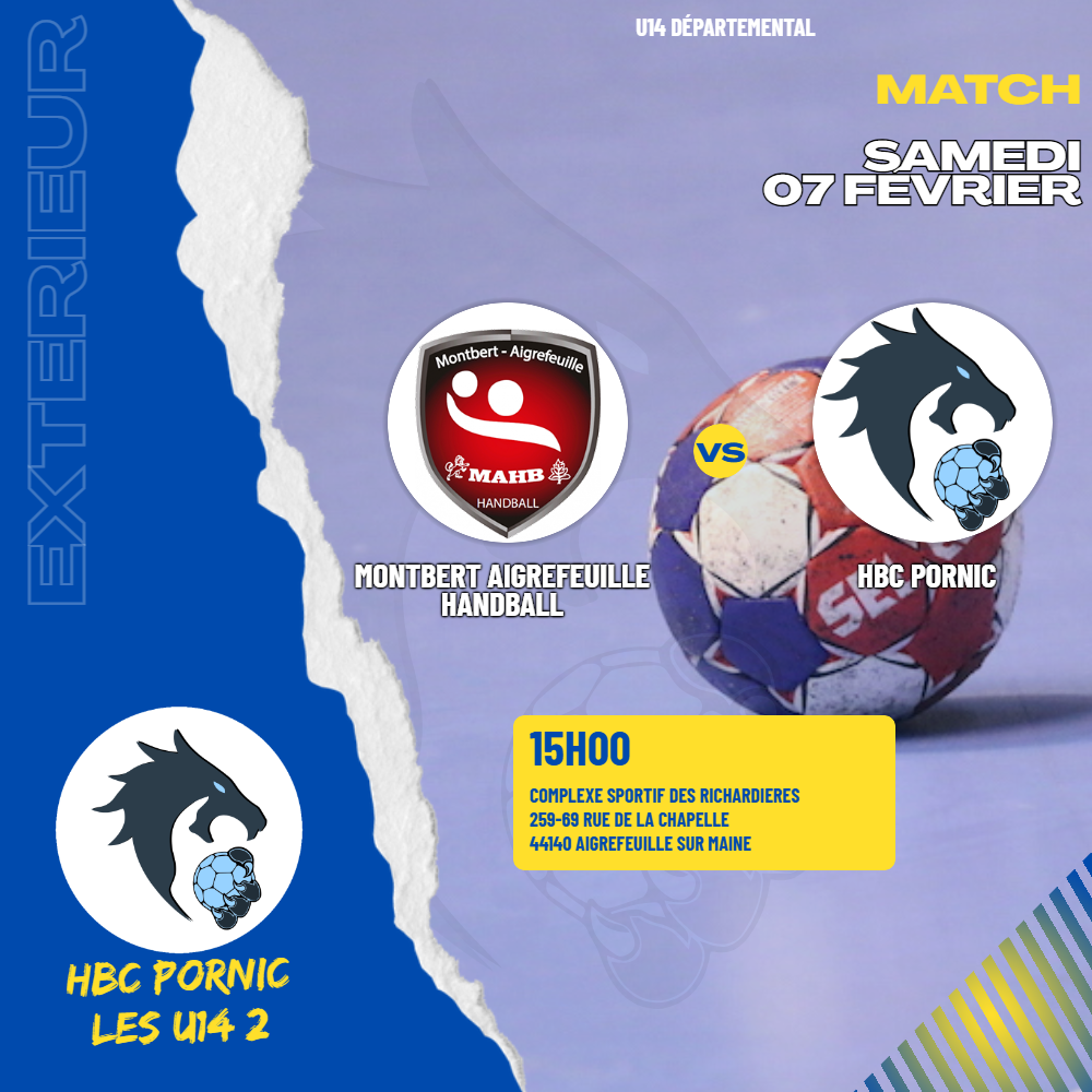 • Montbert Aigrefeuille HandballMontbert Aigrefeuille Handball/HBC Pornic U14 (2)HBC Pornic U14 (2) Les U14 (2) se déplacent sur le terrain du Montbert Aigrefeuille Handball à 15h00