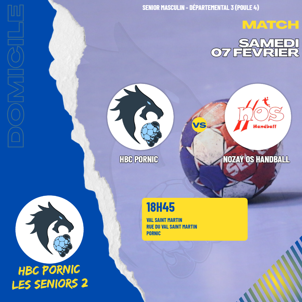 • HBC Pornic SM2HBC Pornic SM2/Nozay OS HandballNozay OS Handball Les Seniors 2 reçoivent le Nozay OS Handball à 18h45