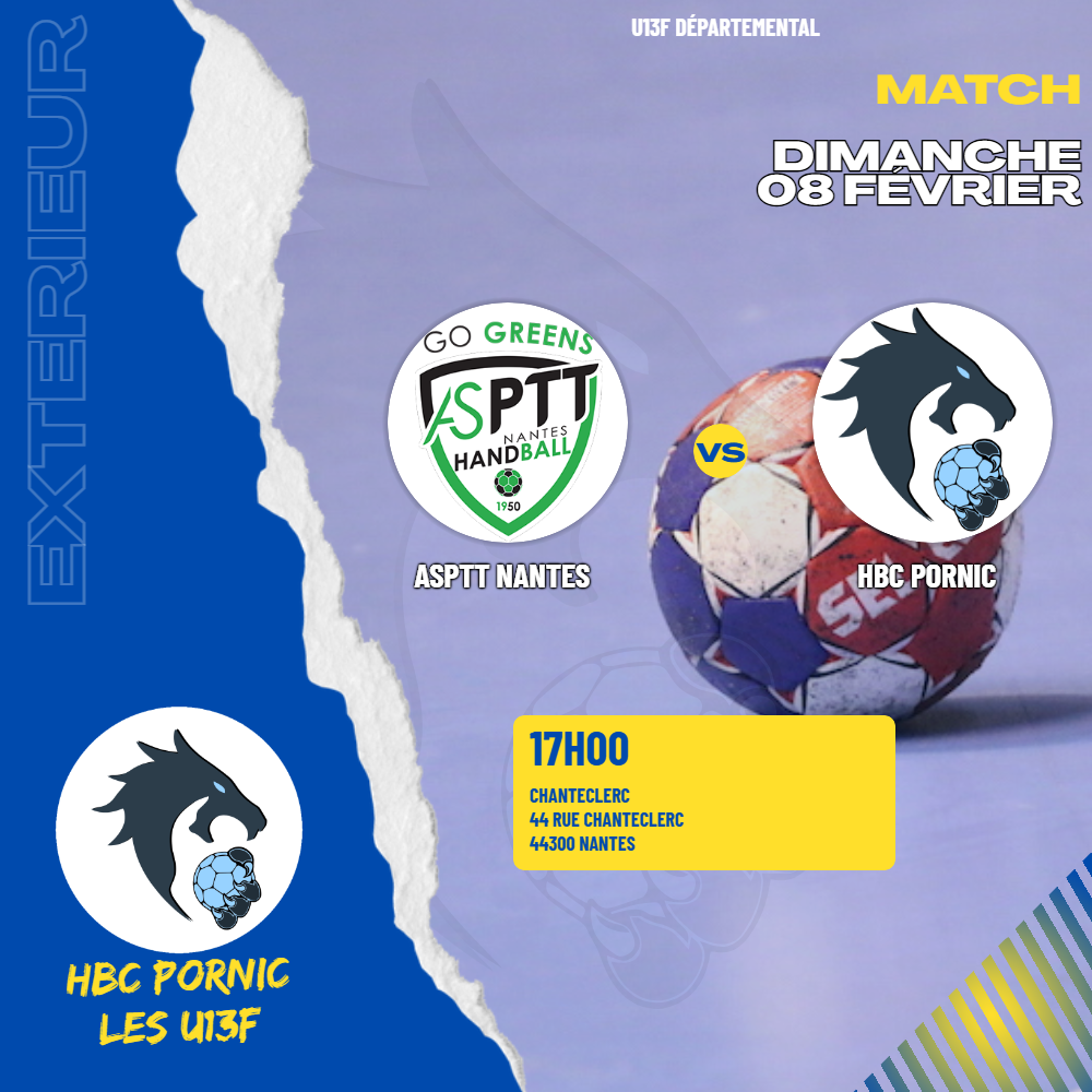 • ASPTT NantesASPTT Nantes/HBC Pornic U13FHBC Pornic U13F Les U13F se déplacent sur le terrain du ASPTT Nantes à 17h00