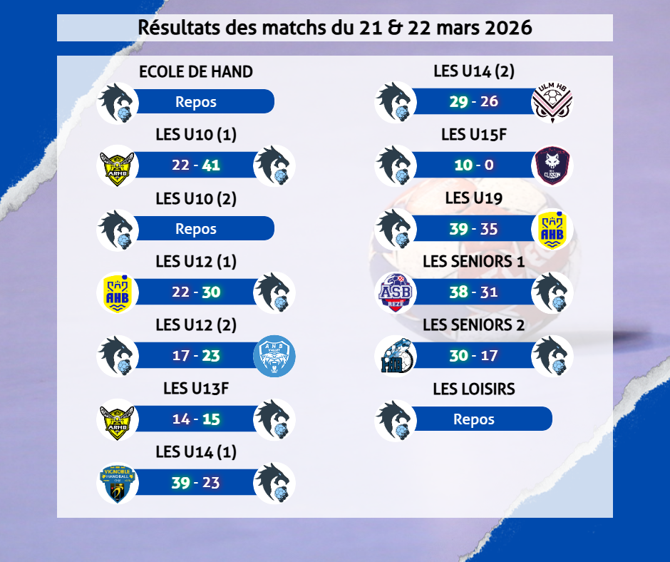 Résultats des 21 & 22 mars 2026