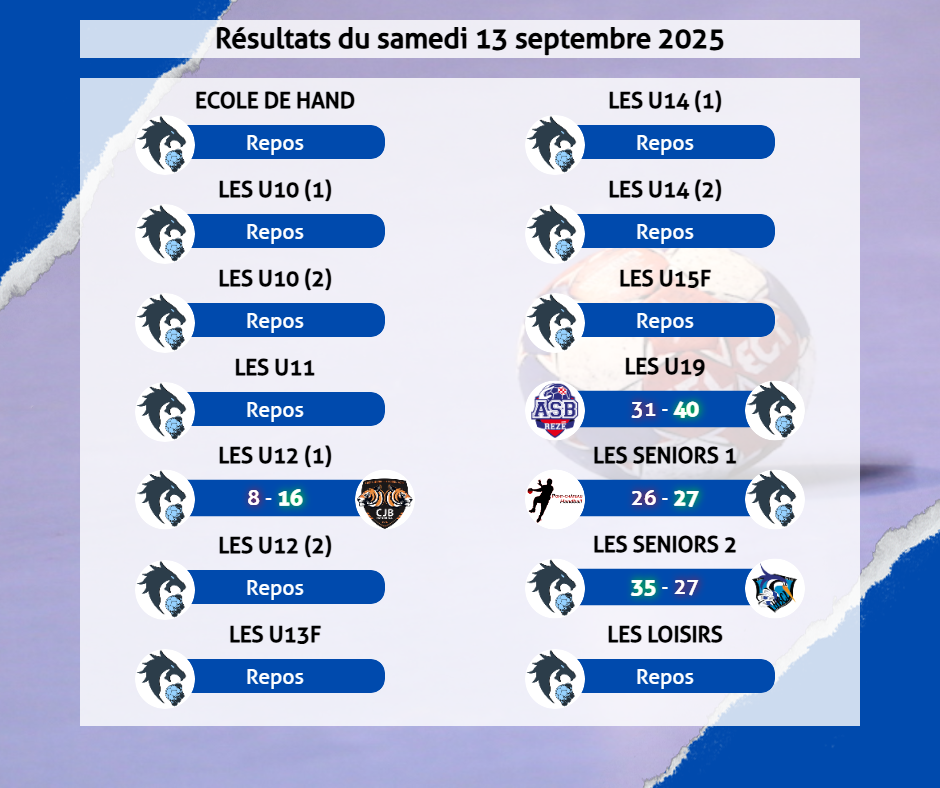 Résultats du samedi 13 septembre 2025