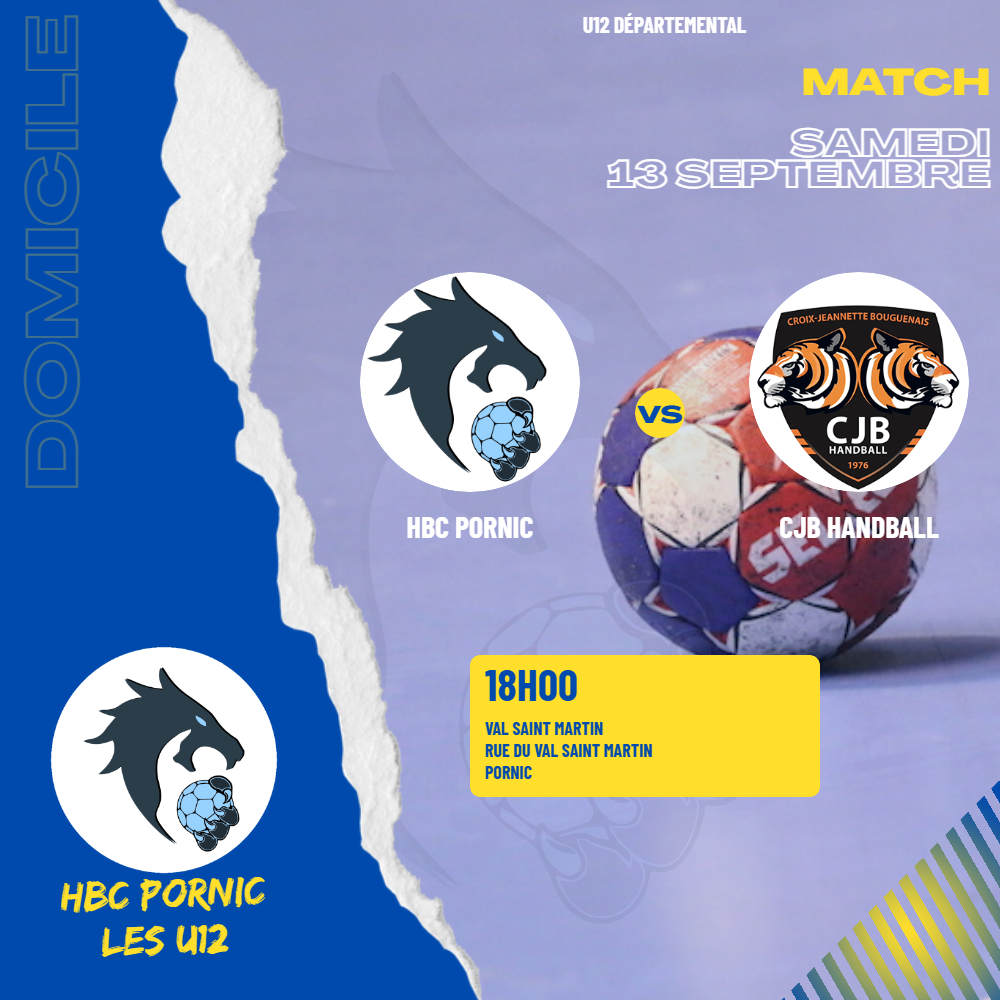 • HBC Pornic U12 (1)HBC Pornic U12 (1)/CJB HandballCJB Handball Les U12 (1) reçoivent le CJB Handball à 18h00