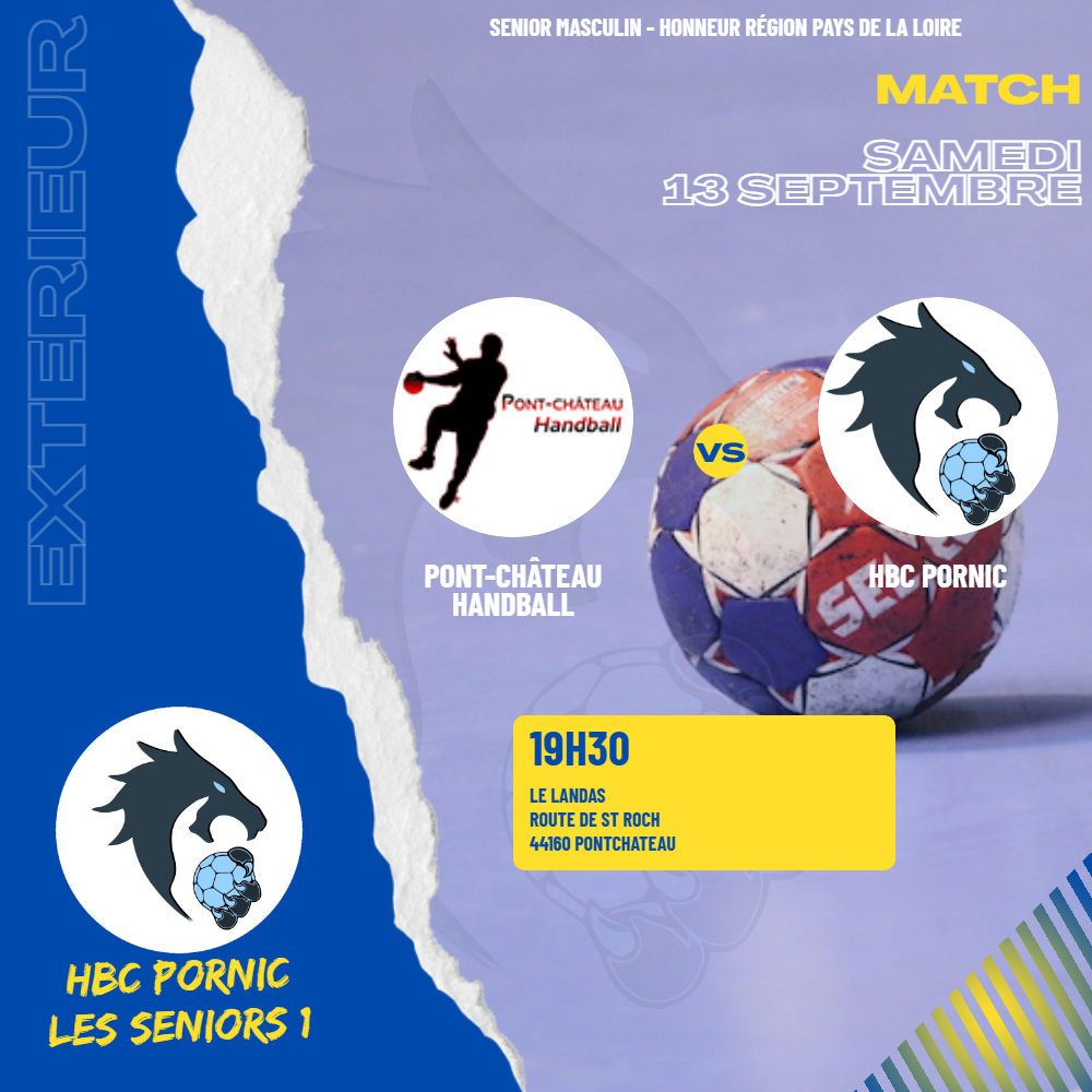 • Pont-Château HandballPont-Château Handball/HBC Pornic SM1HBC Pornic SM1 Les Seniors 1 se déplacent sur le terrain du Pont-Château Handball à 19h30
